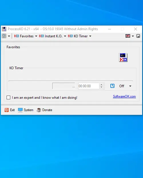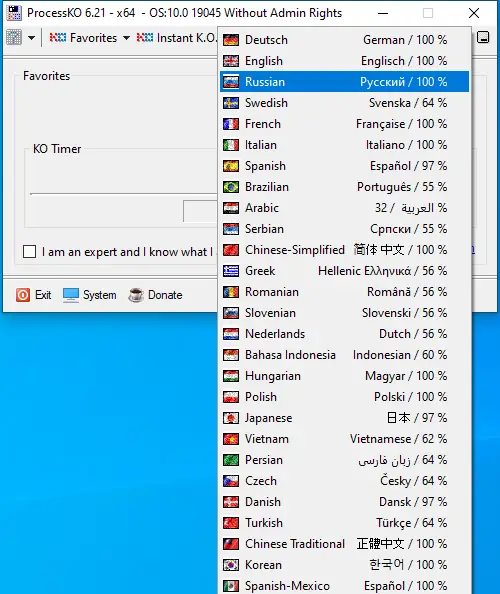 - Запустите файлы ProcessKO.exe или ProcessKO_p.exe в зависимости от необходимости в портативной или стандартной версии.