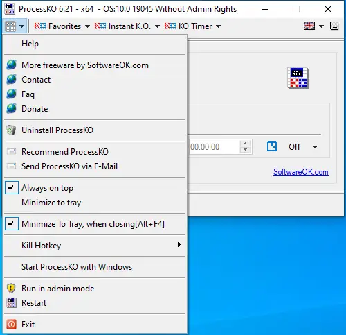 Обратите внимание, что при создании портативной версии необходимо скопировать или создать файл ProcessKO.ini в папке с программой.