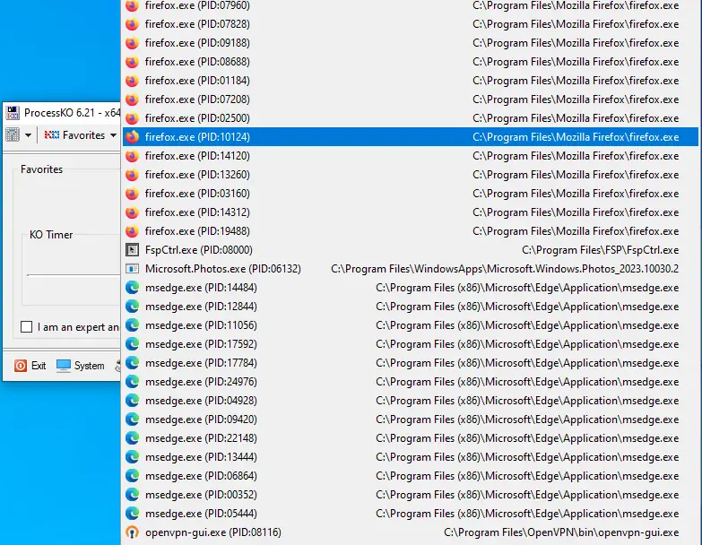 ProcessKO — это небольшая, но очень полезная программа, предназначенная для завершения или «убийства» любого процесса в системе Windows. Она особенно актуальна при тестировании разработки или использовании программных продуктов, которые могут зависать или работать неправильно. В таких случаях стандартные средства, например, диспетчер задач, могут оказаться бесполезными или медленными, и тогда на помощь приходит эта утилита. Она работает в портативном режиме, не требует установки и подходит для любой версии Windows — 7, 8/8.1, 10 или 11, а также совместима с 32 и 64-битными системами.