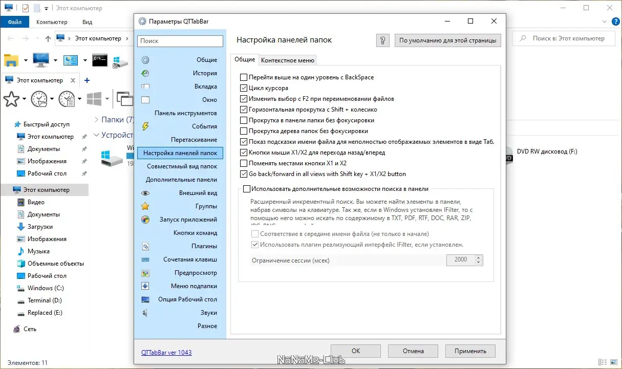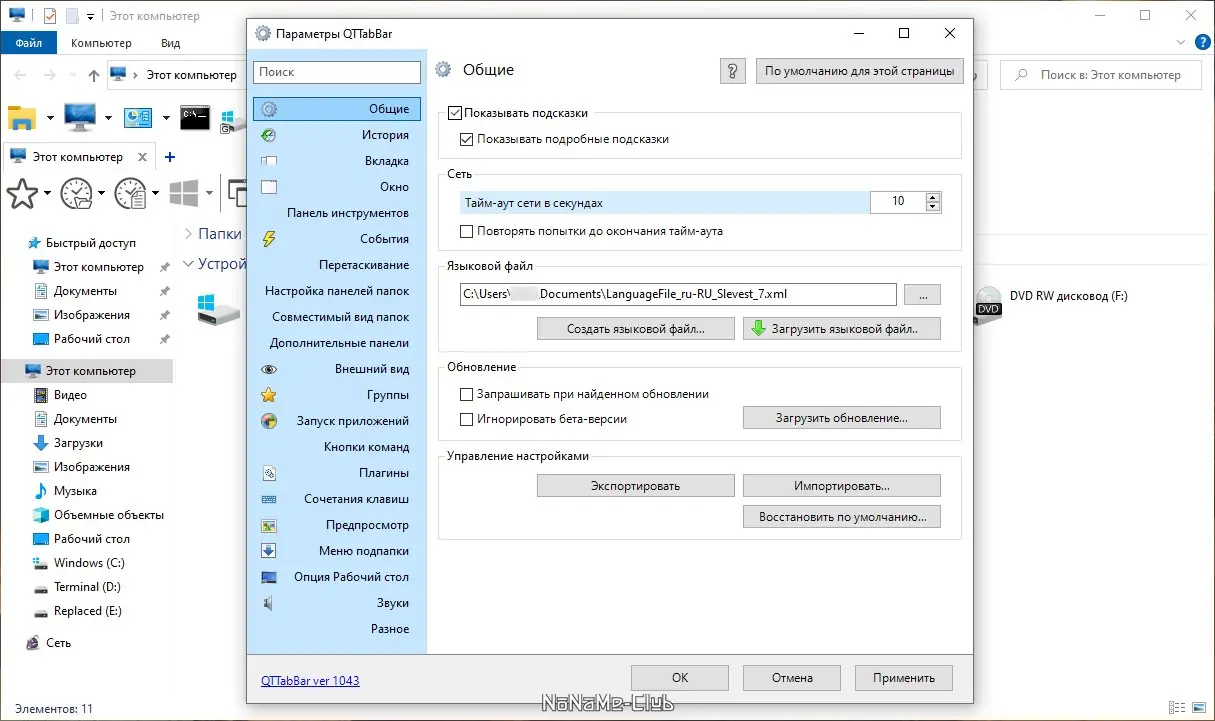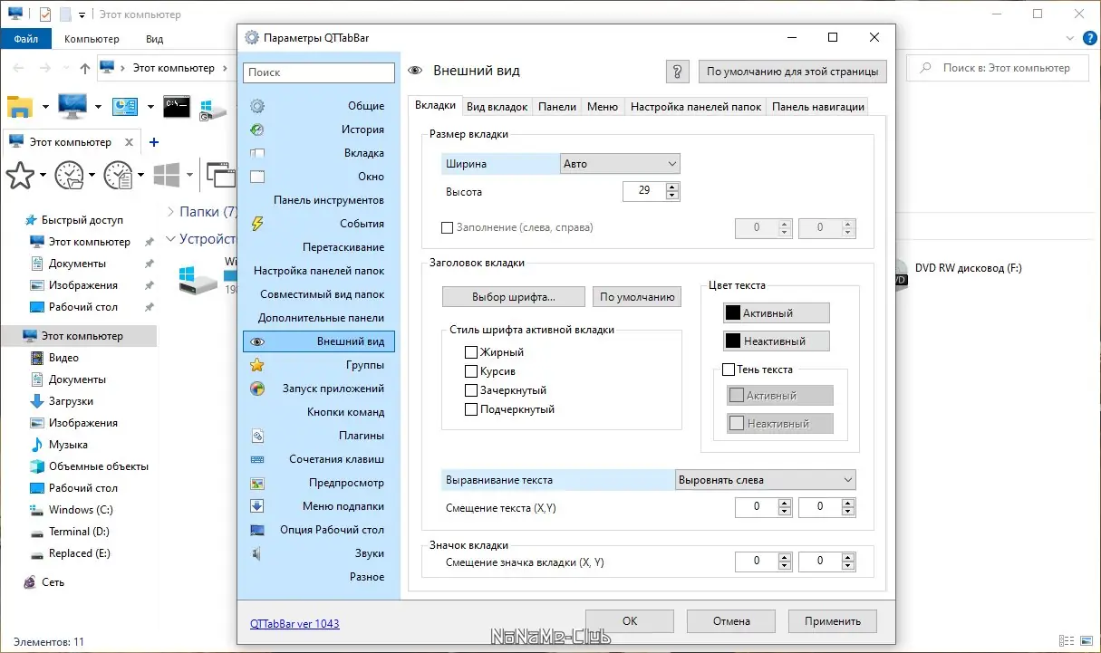 QTTabBar — это мощное расширение для Проводника Windows, которое значительно упрощает работу с файлами и папками. Позволяет открывать и управлять вкладками внутри одного окна, делая навигацию более быстрой и удобной. Благодаря функции запоминания открытых вкладок, фильтрам, горячим клавишам и поддержке плагинов, вы можете настроить рабочее пространство под свои нужды. Утилита также предусматривает предпросмотр текстовых и графических файлов, а воспроизведение аудиофайлов при наведении курсора. Дополнительные элементы интерфейса, такие как панель команд, можно полностью настроить или дополнительно расширить сторонними модулями. Для повышения привлекательности внешнего вида доступны загрузки сторонних разработчиков, что делает программу универсальной и гибко настраиваемой.