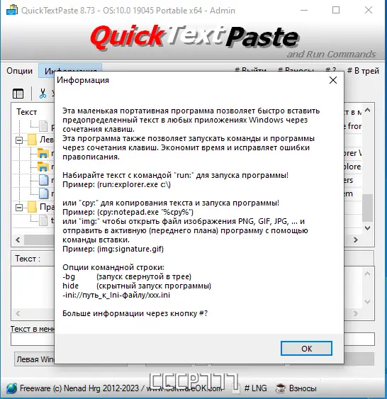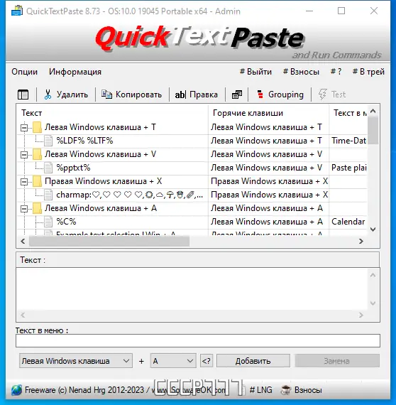 Бесплатная портативная программа для быстрого вставки текста с помощью горячих клавиш. Упростите работу с повторяющимися текстами и командными вставками, экономя время и повышая эффективность.
