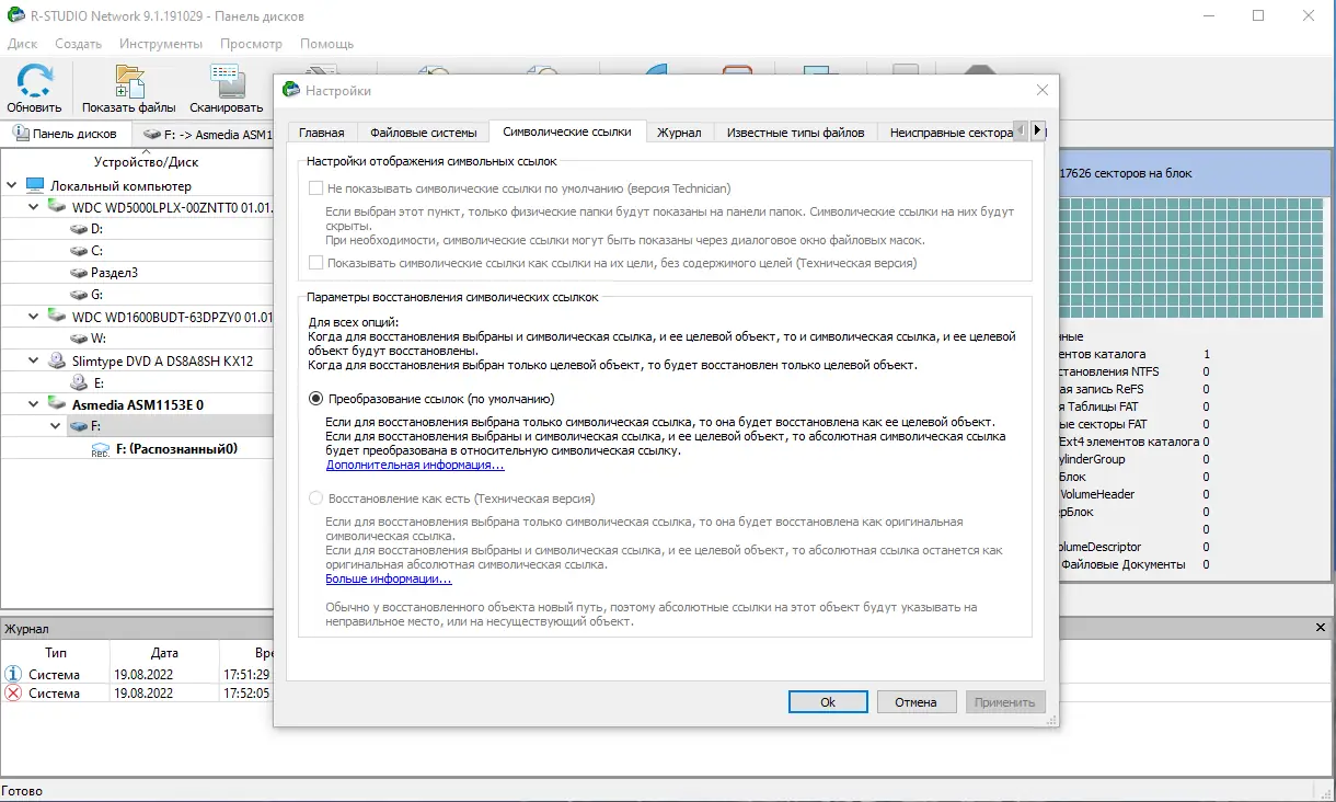 - Гибкая настройка процесса восстановления и наличие шестнадцатеричного редактора