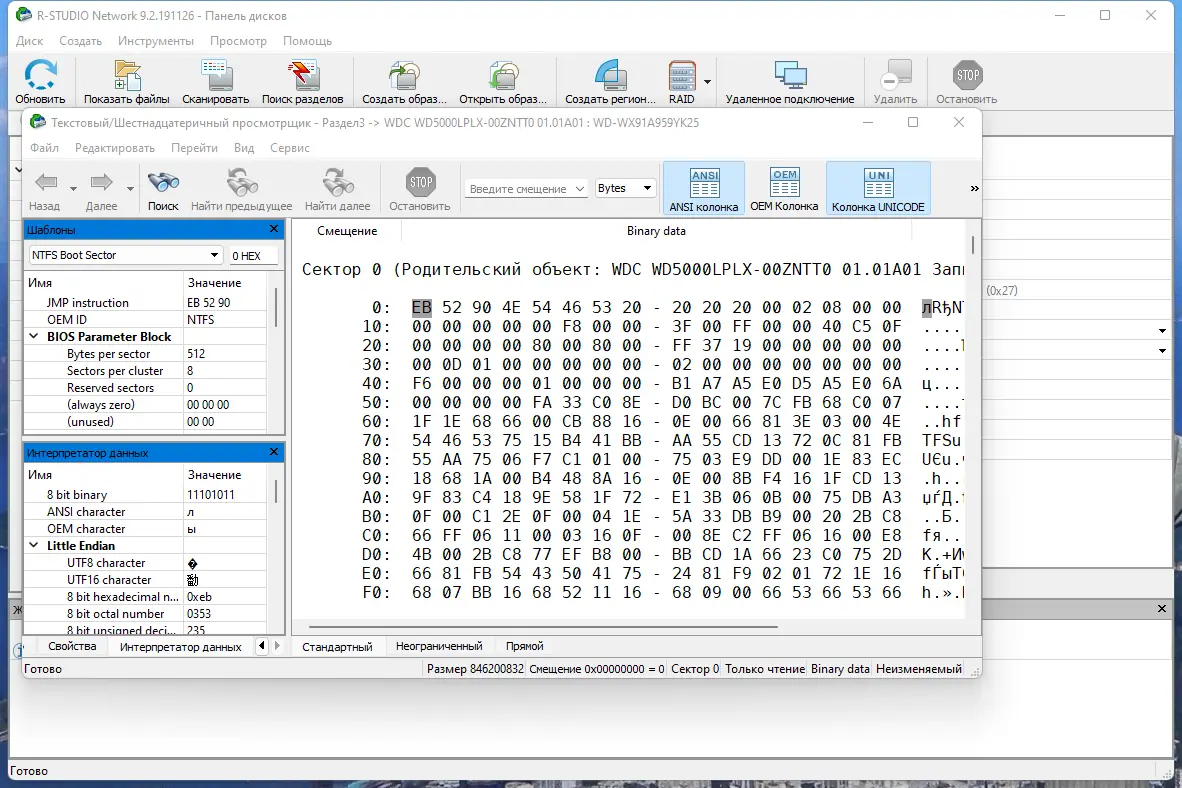 - Просмотр и редактирование содержимого диска в шестнадцатеричном редакторе