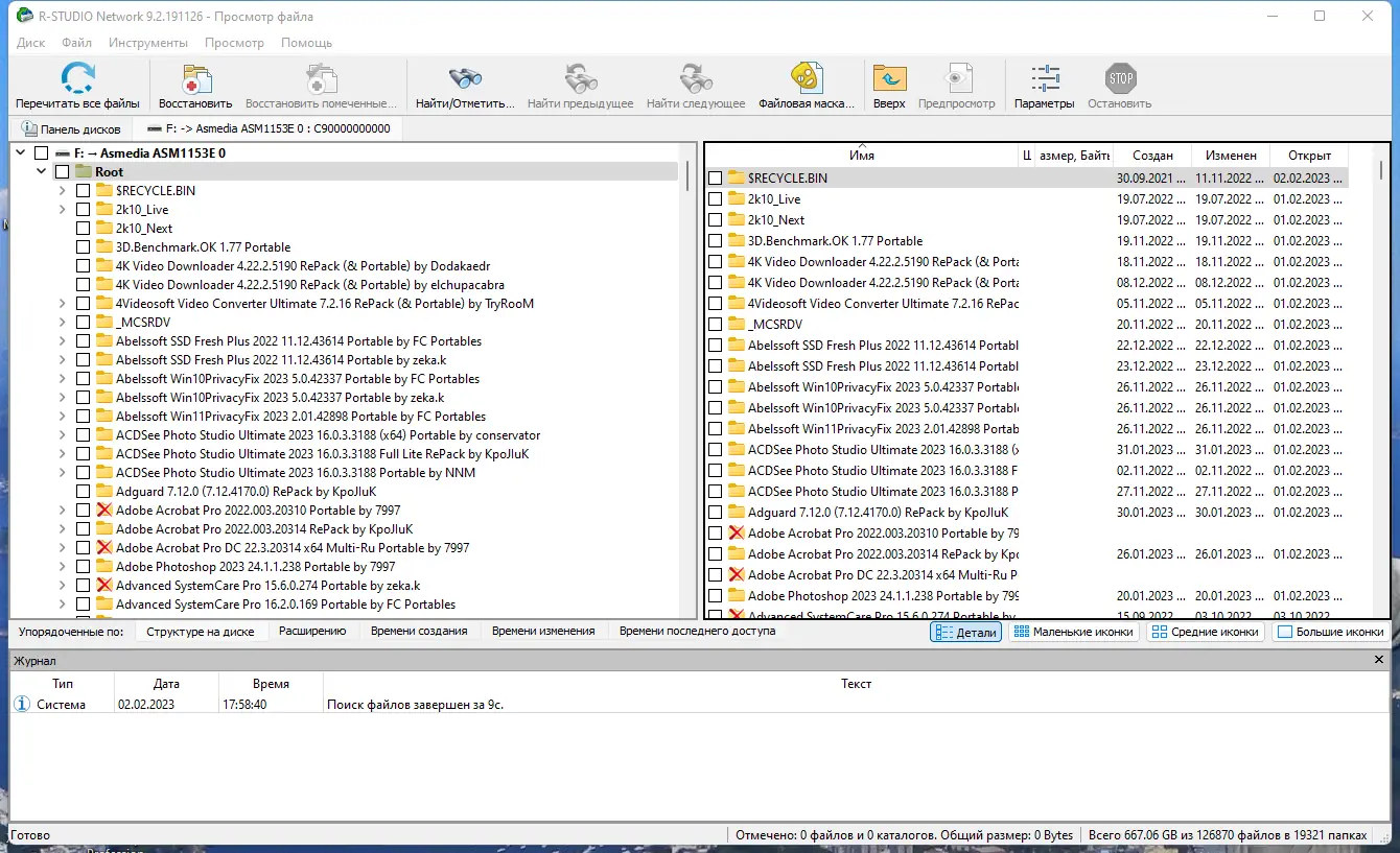 - Поддержка восстановления удалённых данных вне корзины, при очистке или после сбоев системы.