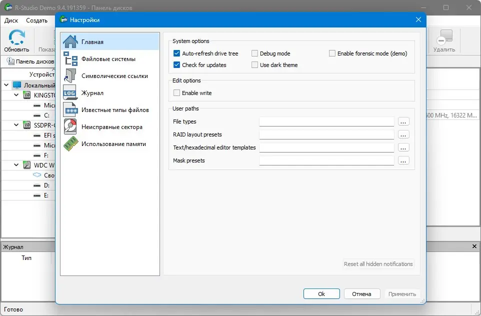 - Гибкая настройка параметров восстановления и возможность просмотра данных в шестнадцатеричном редакторе.