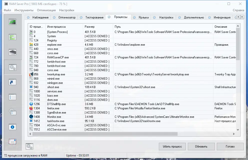 Этот комплексный продукт служит для дефрагментации системной памяти, восстановления утечек и освобождения RAM путём временного перемещения неиспользуемых драйверов и библиотек в swap-файл. Такой подход позволяет ускорить работу приложений, требующих максимальной загрузки процессора и оперативной памяти. RAM Saver Pro помогает оптимизировать работу операционной системы даже на слабых компьютерах, повышая общую эффективность использования ресурсов и снижая нагрузку на аппаратные компоненты.
