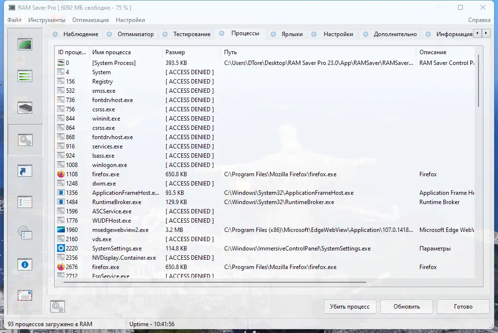 Эта программа помогает освободить оперативную память, дефрагментировать системную память, восстанавливать утечки и управлять процессами в реальном времени. Благодаря гибким настройкам и автоматической оптимизации, RAM Saver позволяет обеспечить максимально эффективную работу системы даже на слабых компьютерах. Она также временно помещает неиспользуемые драйверы и библиотеки в swap-файл, что способствует ускорению обработки данных и освобождению оперативной памяти для требовательных приложений.