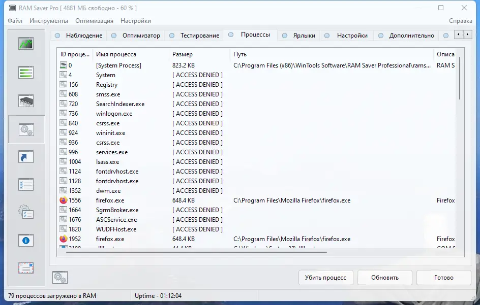 Несмотря на это, RAM Saver — это мощный инструмент для профессионального использования и для пользователей, ищущих способы повысить производительность на слабых и современных системах.