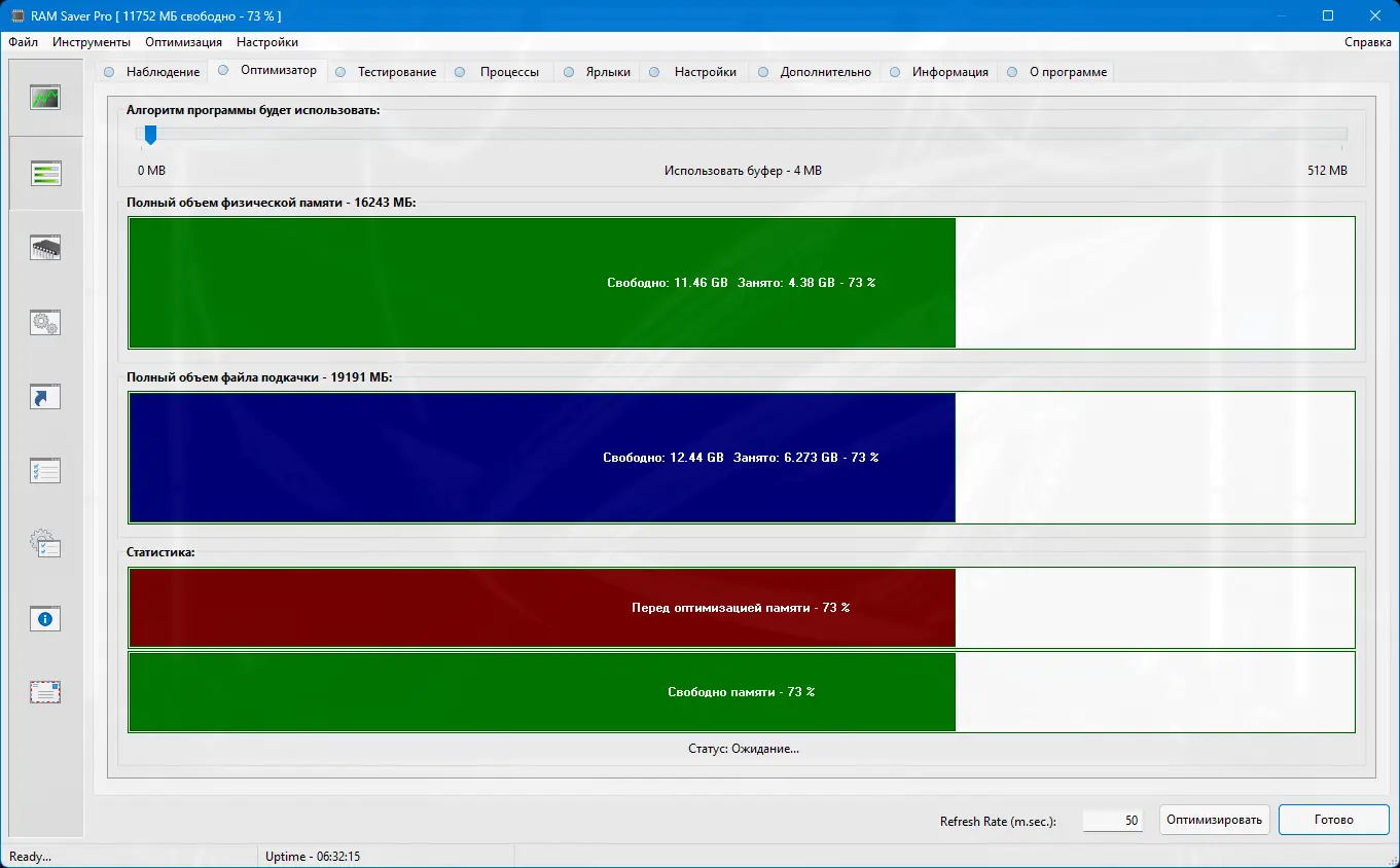 - Запустить программу и начать мониторинг и оптимизацию оперативной памяти.
