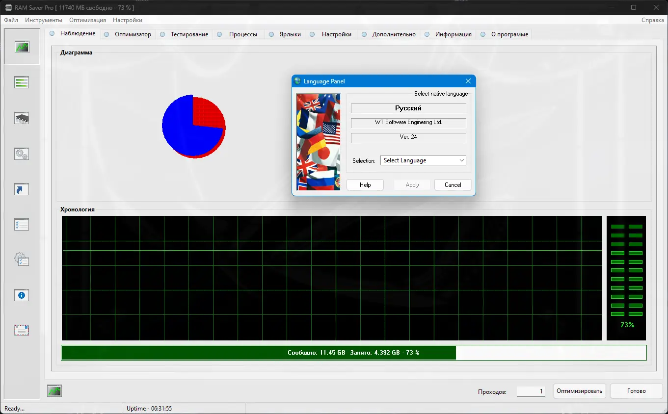 RAM Saver — это профессиональный инструмент для мониторинга, очистки и оптимизации оперативной памяти, разработанный для повышения производительности вашего компьютера.