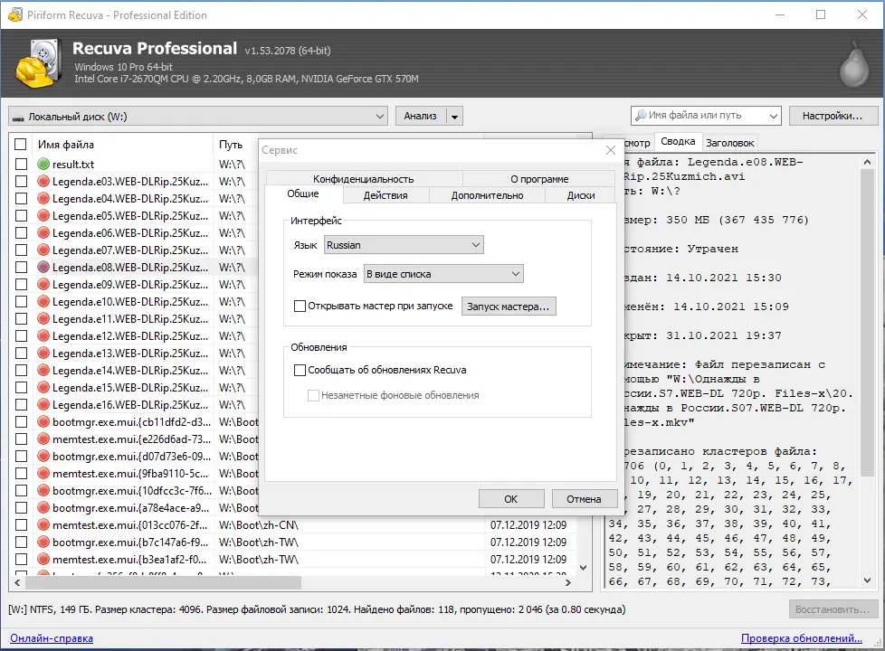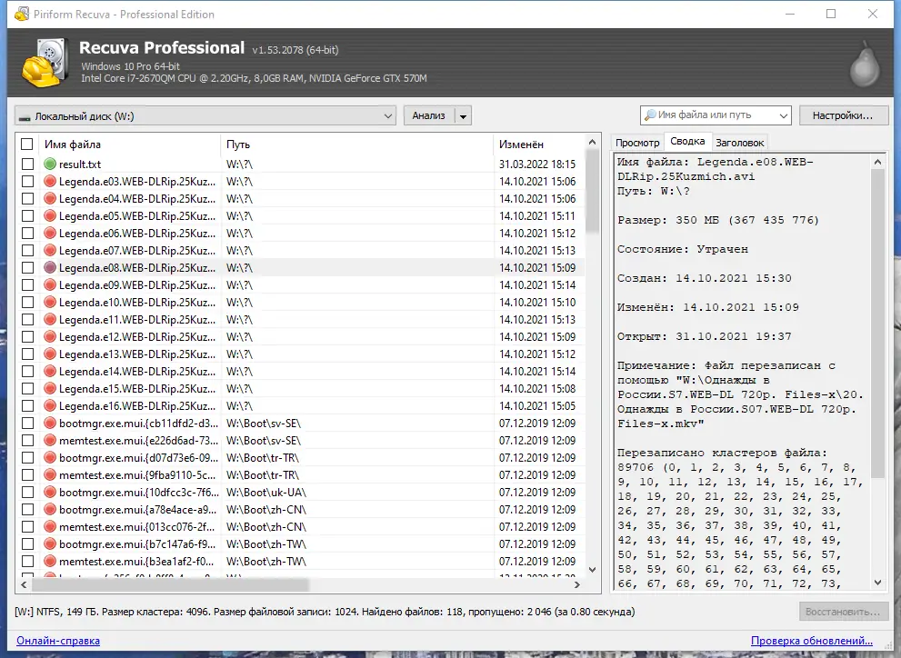 Recuva — это надежное и простое в использовании решение для восстановления удаленных данных. Программа способна быстро осуществлять сканирование выбранных разделов жесткого диска или съемных носителей в поисках утерянных файлов. В режиме списка пользователю доступна информация о состоянии каждого файла, что позволяет оценить вероятность его полного восстановления. Помимо жесткого диска, утилита эффективно работает с цифровыми фотокамерами и MP3-плеерами, обеспечивая восстановление данных даже в случае их случайного удаления. Также есть возможность поиска конкретного файла по имени, что ускоряет процесс поиска нужных данных.