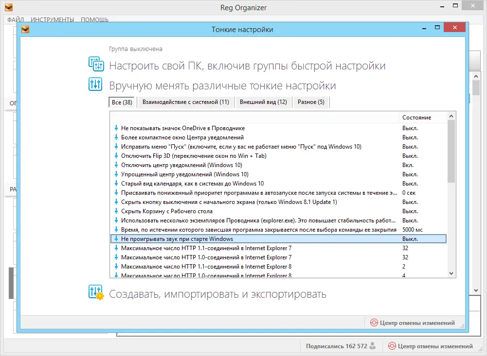 - Расширенный редактор реестра с возможностью экспорта, импорта и редактирования .reg-файлов, а также просмотр содержимого перед импортом.