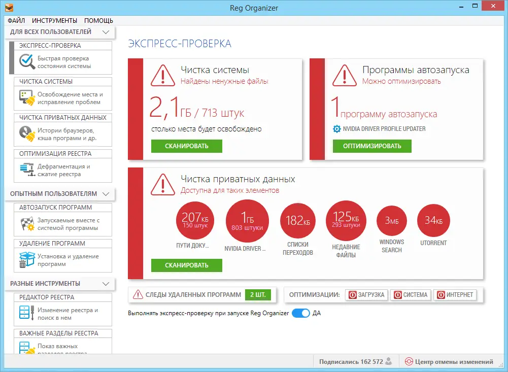 - Широкий спектр функций по очистке и оптимизации системы.