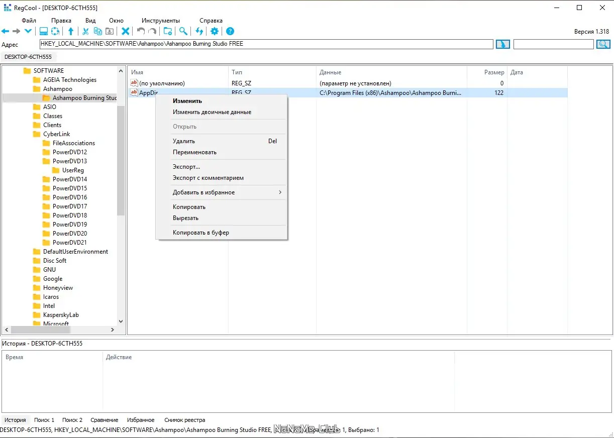 - Встроенные инструменты копирования, вырезания, вставки, перемещения, удаления и переименования ключей и значений.
