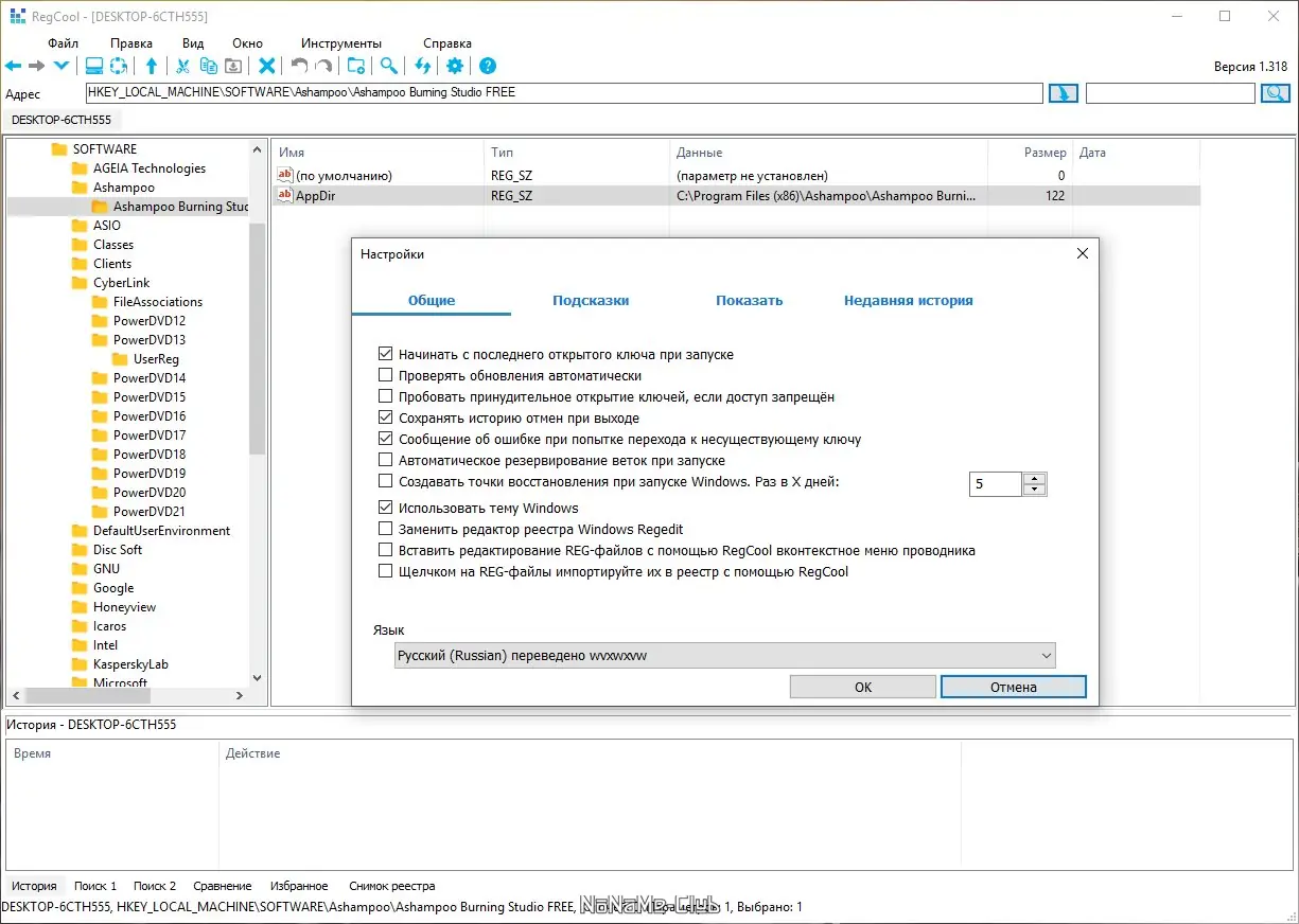 - Возможность работы с файлами реестра: импорт, экспорт, редактирование.