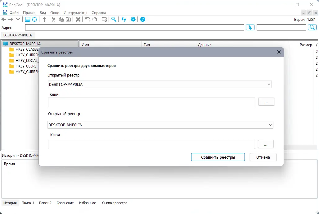 - Возможность сравнения двух снимков реестра.