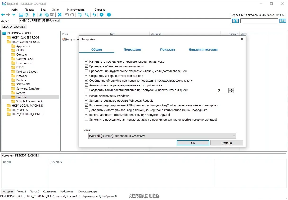 Дополнительные функции включают работу со скрытыми ключами, сравнение снимков реестра, использование закладок для быстрого доступа к важным элементам, а также деструктуризацию реестра через его дефрагментацию для повышения производительности. Утилита предоставляет инструменты для перетаскивания значений, а также управление избранными элементами для быстрого доступа к часто используемым объектам.