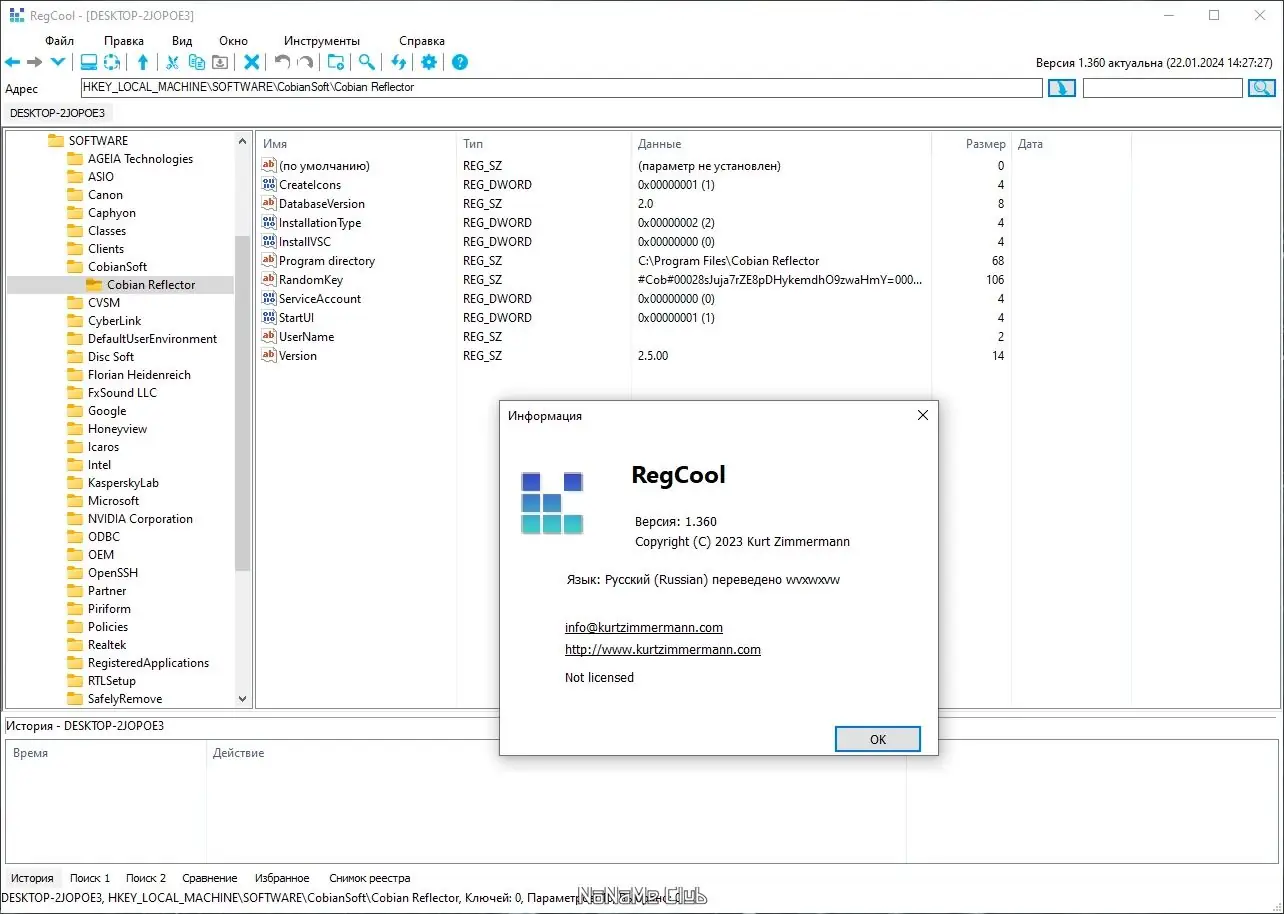 Это мощная утилита для работы с системным реестром в операционных системах Windows 7, 8/8.1, 10 и 11. Программа обладает интуитивно понятным интерфейсом, выполненным в стиле Проводника Windows, что облегчает навигацию и работу с реестром. Главной особенностью является возможность сравнивать два реестра с отображением всех различий между ними, что значительно упрощает контроль изменений и аудит системных настроек. Также предусмотрены функции копирования, вырезания, вставки, перемещения, удаления и переименования ключей и значений реестра, что ускоряет обслуживание системы. Встроенные инструменты позволяют редактировать файлы реестра, импортировать и экспортировать их, а также создавать резервные копии с последующим восстановлением при необходимости. Для поиска информации предусмотрен высокоэффективный инструмент, позволяющий находить нужные записи всего за 10 секунд. Кроме того, программа поддерживает работу со скрытыми ключами, обеспечивает дефрагментацию реестра для повышения производительности системы и содержит удобные закладки для быстрого доступа к важным элементам.