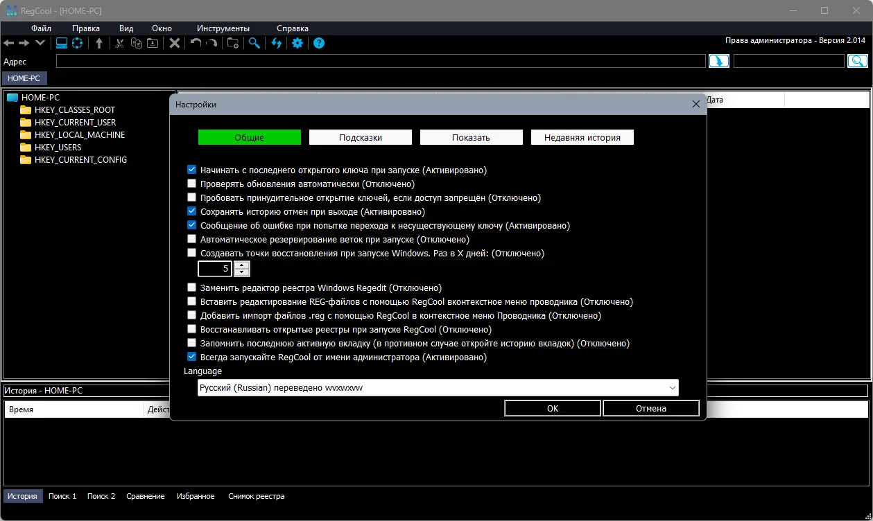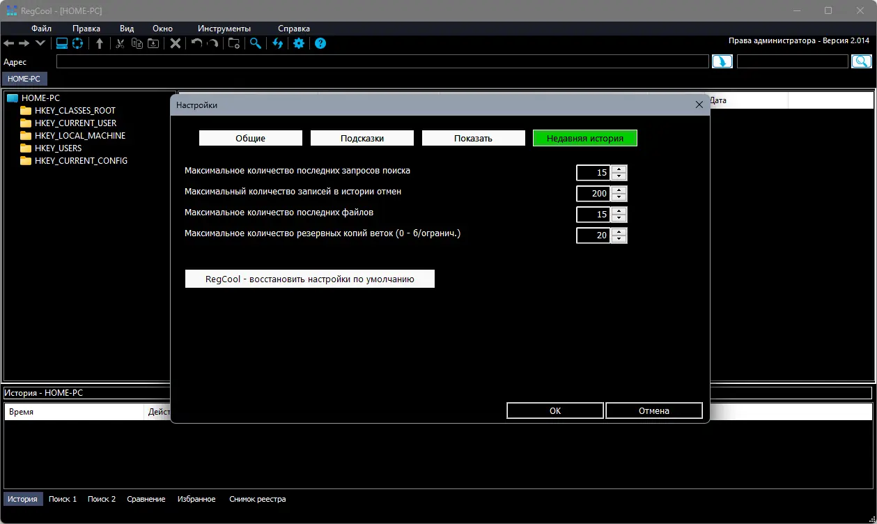 - Поддержка работы с скрытыми ключами и снимками реестра
