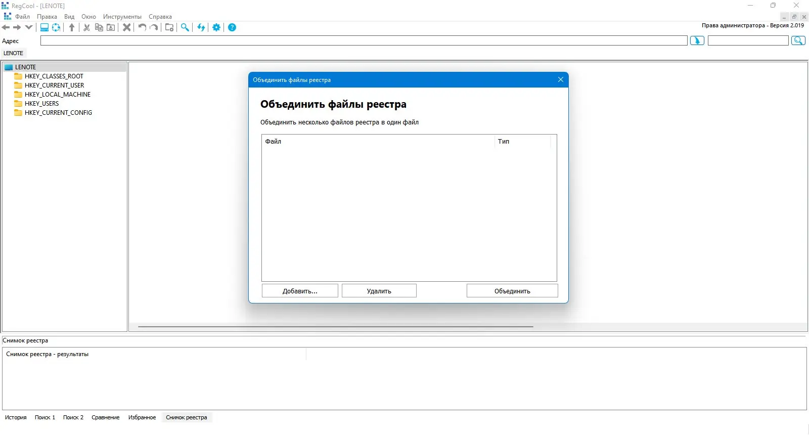 RegCool — мощный редактор системного реестра с интуитивно понятным интерфейсом, выполненным в стиле Проводника Windows. Он объединяет функциональность штатного RegEdit с расширенными возможностями, позволяющими быстрее выполнять задачи по обслуживанию реестра и обеспечивающими более высокий уровень контроля. Среди ключевых особенностей — сравнение двух реестров с отображением отличий, что существенно облегчает диагностику и анализ изменений. Также программа позволяет выполнять операцию копирования, вставки, перемещения, удаления и переименования ключей и значений, а ещё редактировать файлы реестра, импортировать и экспортировать их данные, создавать резервные копии и восстанавливать работоспособность системы в случае необходимости. Встроенный быстрый поиск по всему реестру за 10 секунд делает работу максимально продуктивной и минимизирует затраты времени на поиск нужной информации.