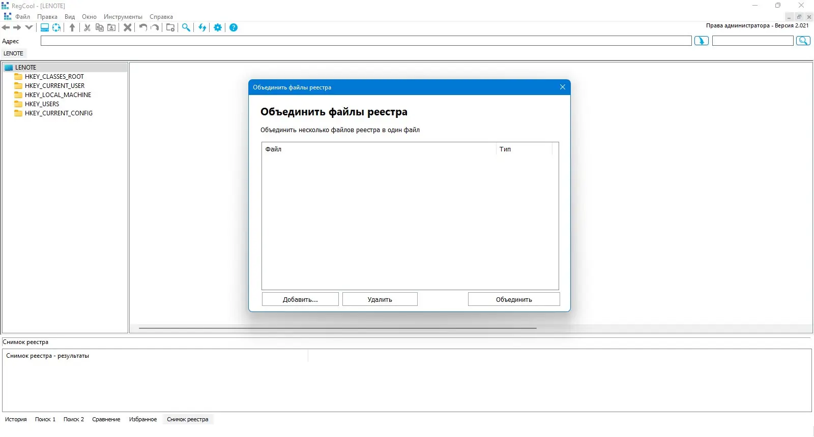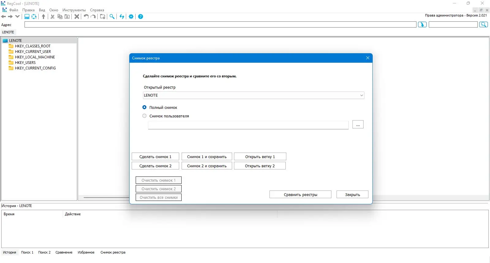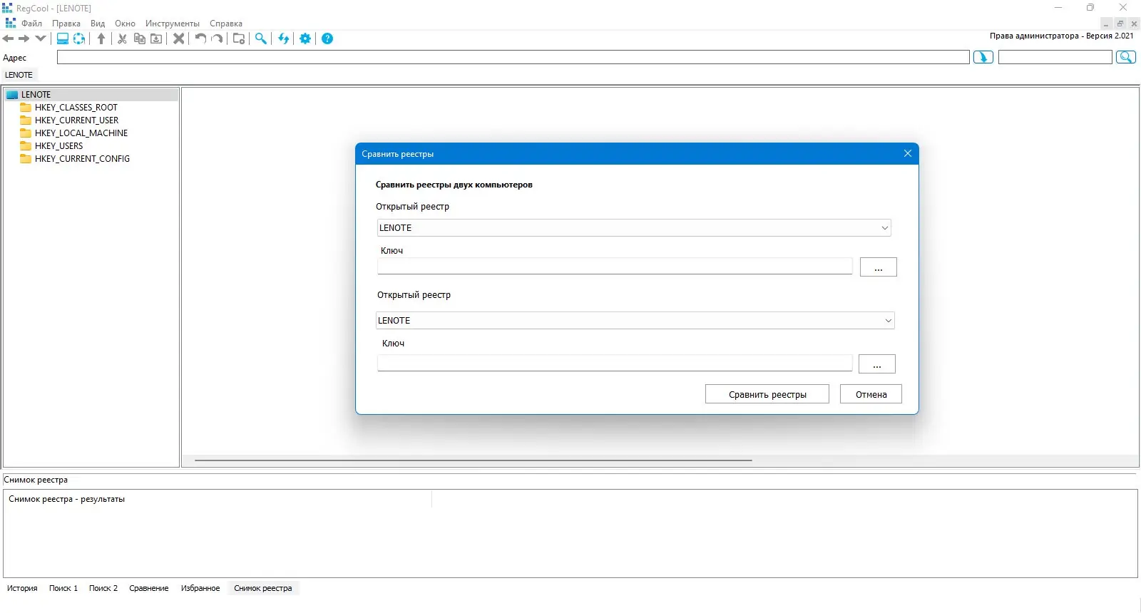- Возможность сравнивать два реестра и выявлять различия.