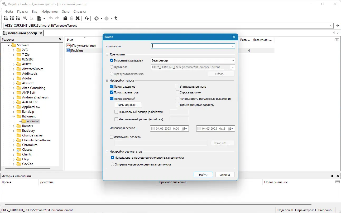 - Быстрый и эффективный поиск по реестру без использования штатного редактора.