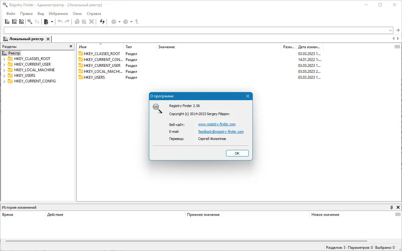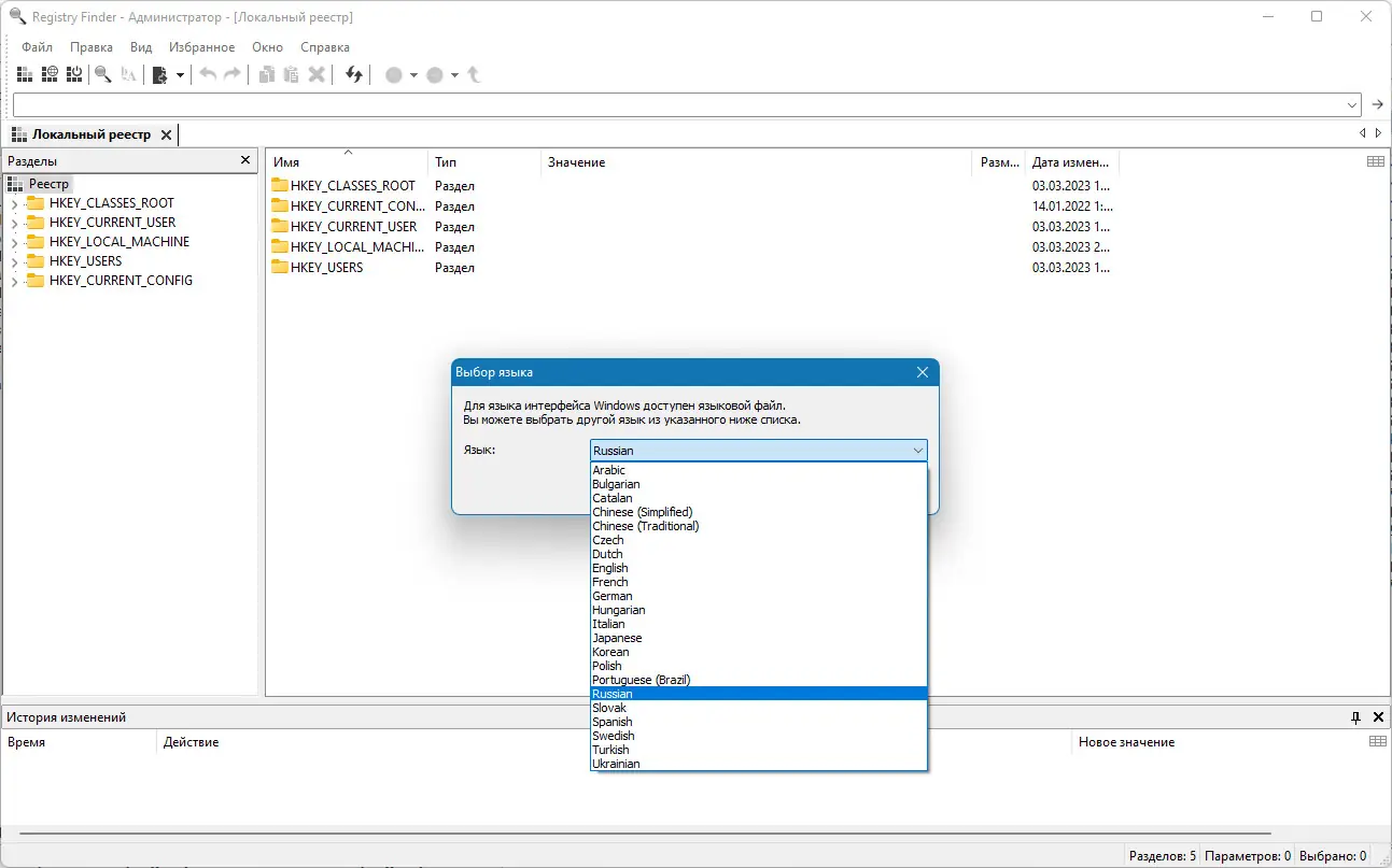 - Поддержка работы с локальным и сетевым реестром.