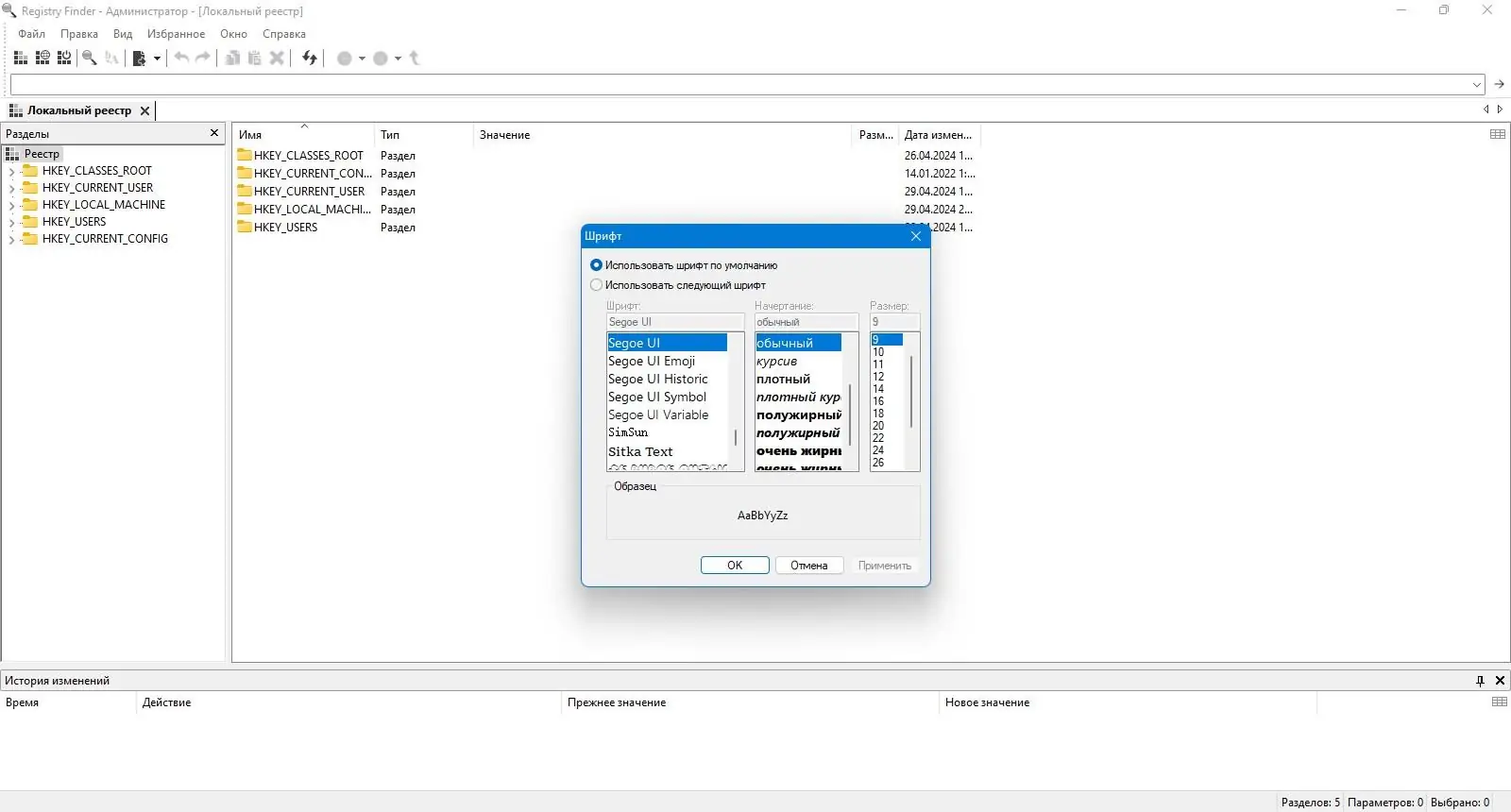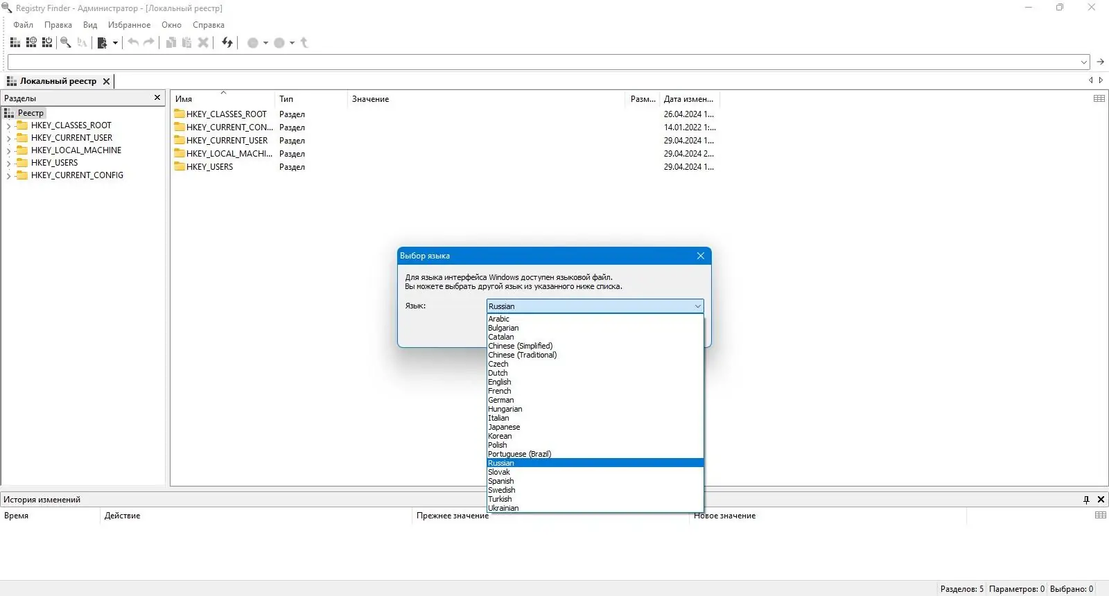 - Функции отмены и повтора операций для обеспечения безопасности изменения реестра.