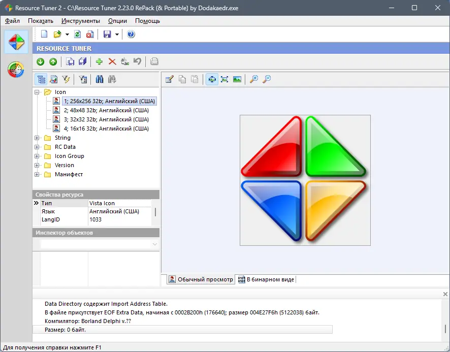 В целом, программа предоставляет широкий спектр функционала для профессиональных и любительских задач по редактированию ресурсов приложений под Windows.