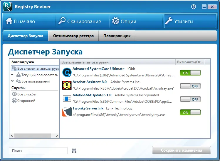 - Позволяет управлять запуском приложений и служб при старте системы для сокращения времени загрузки.