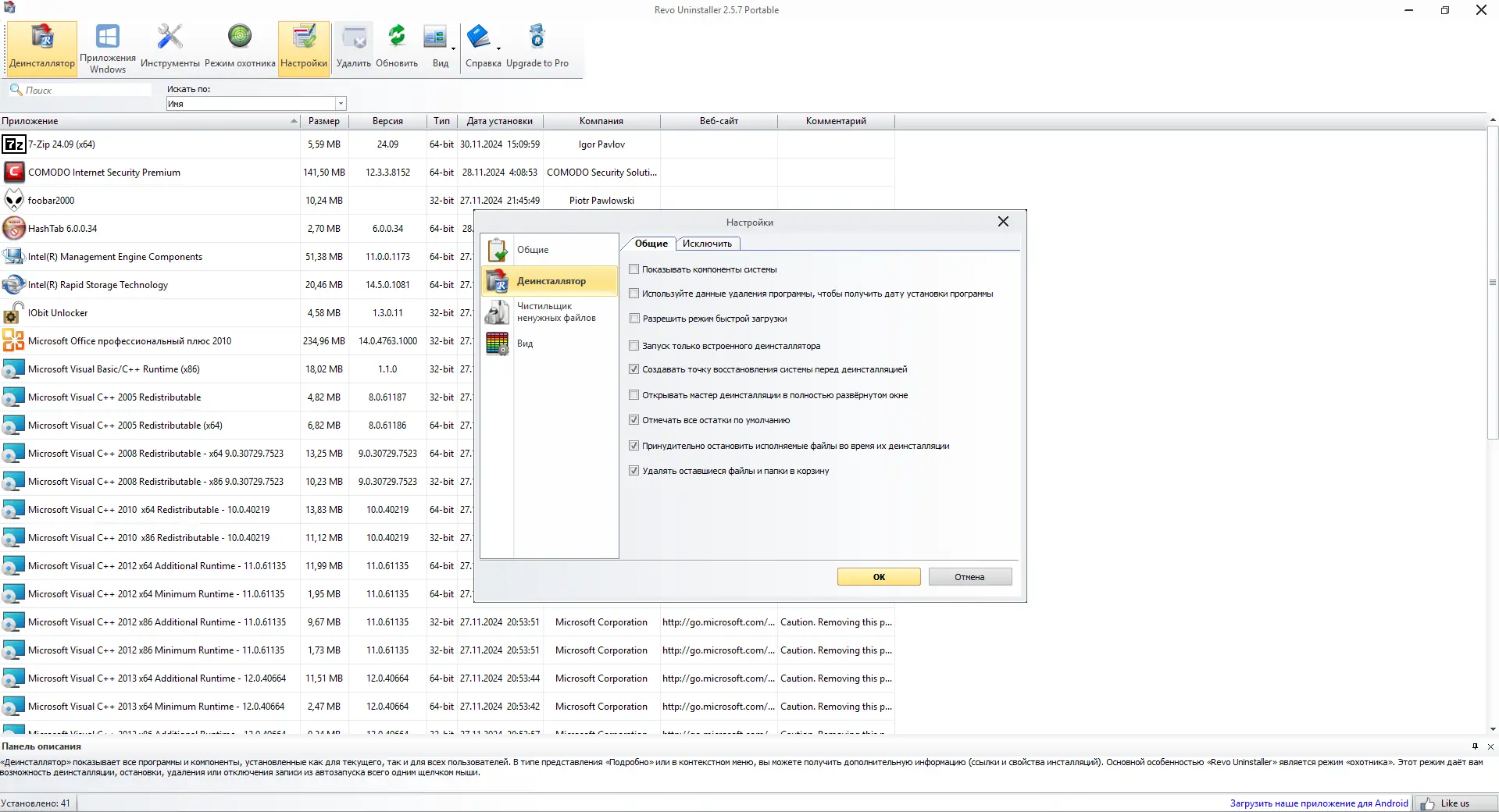 - Может потребовать перезагрузки системы для завершения удаления сложных приложений