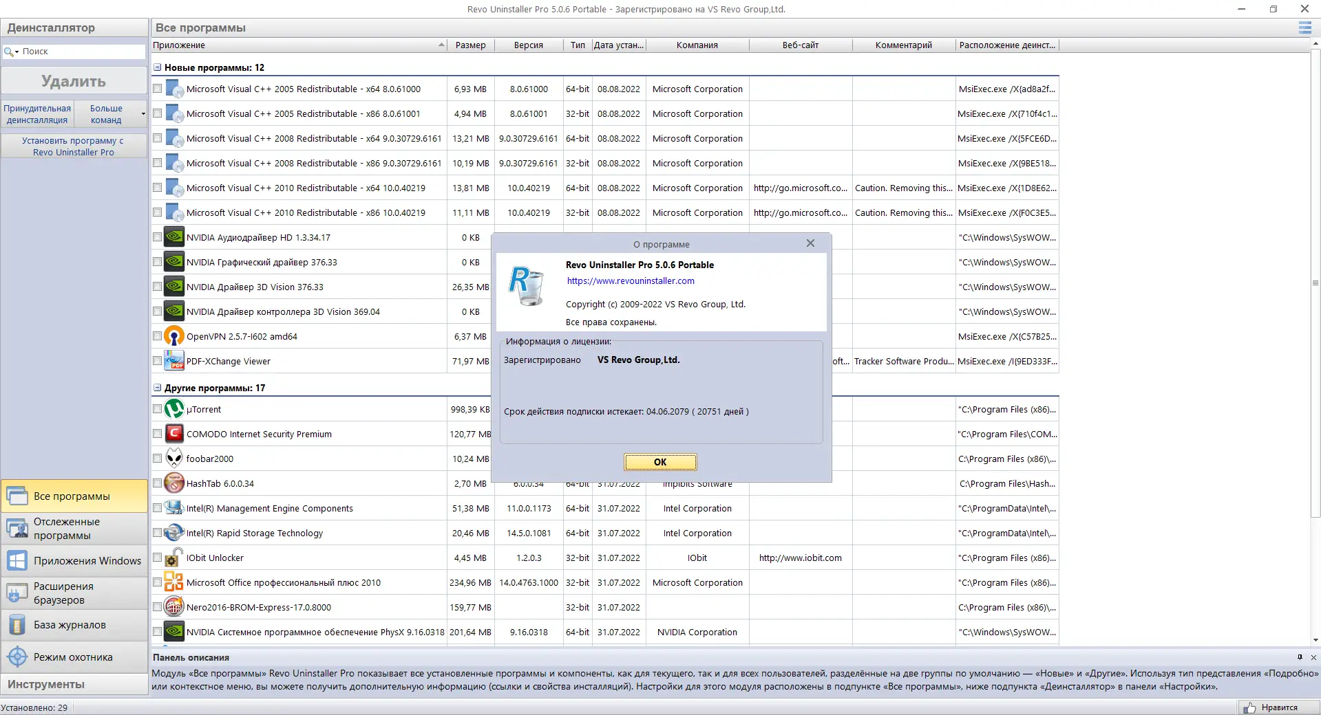 - Для лицензионной версии скопировать файл revouninstallerpro5.lic в папку %PROGRAMDATA%\VS Revo Group\Revo Uninstaller Pro.