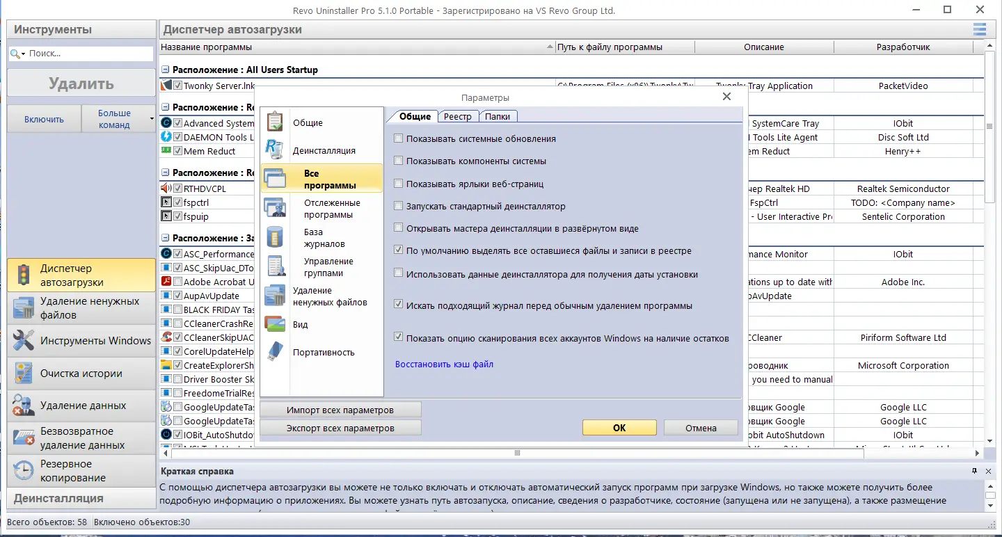 Revo Uninstaller — это мощное решение для удаления нежелательных приложений и очистки системы от остатков удалённых программ. Инструмент использует продвинутый алгоритм сканирования системы до и после инсталляции для обнаружения и устранения даже самых скрытых файлов, папок и ключей реестра. В программе реализован уникальный режим «Охотник», который позволяет управлять приложениями простым наведением курсора и выполнять множество действий, таких как деинсталляция, остановка или удаление автозагрузки. Также Revo Uninstaller предлагает дополнительные утилиты для системной очистки, обеспечивая комплексный подход к поддержанию порядка на компьютере.
