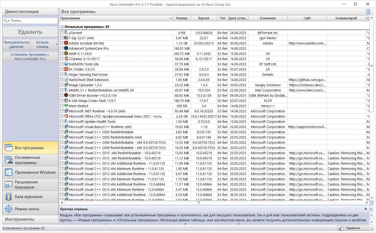Революционное решение для удаления нежелательных приложений и remnants программного обеспечения. Этот инструмент обладает продвинутым алгоритмом сканирования системы до и после установки, что обеспечивает максимально эффективное удаление файлов, папок и ключей реестра, оставшихся после деинсталляции. Кроме того, программа предлагает уникальный режим «Охотник», который позволяет управлять приложениями простым наведением на их значки и выполнять такие действия, как деинсталляция, остановка, удаление или отмена автозапуска.
