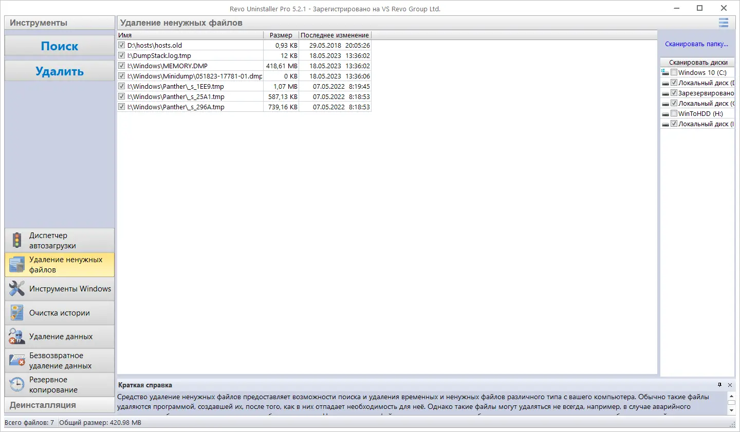 Revo Uninstaller — это инструмент, который обеспечивает глубокую очистку после удаления программ и эффективное управление автозагрузкой. Простота использования и богатый функционал делают её ценным помощником для системных администраторов и продвинутых пользователей.