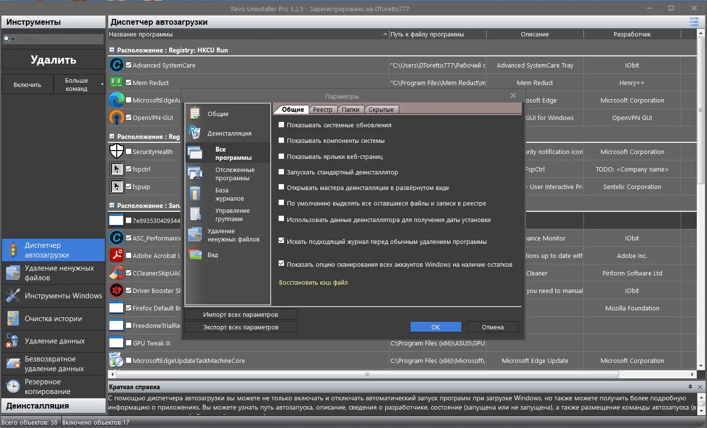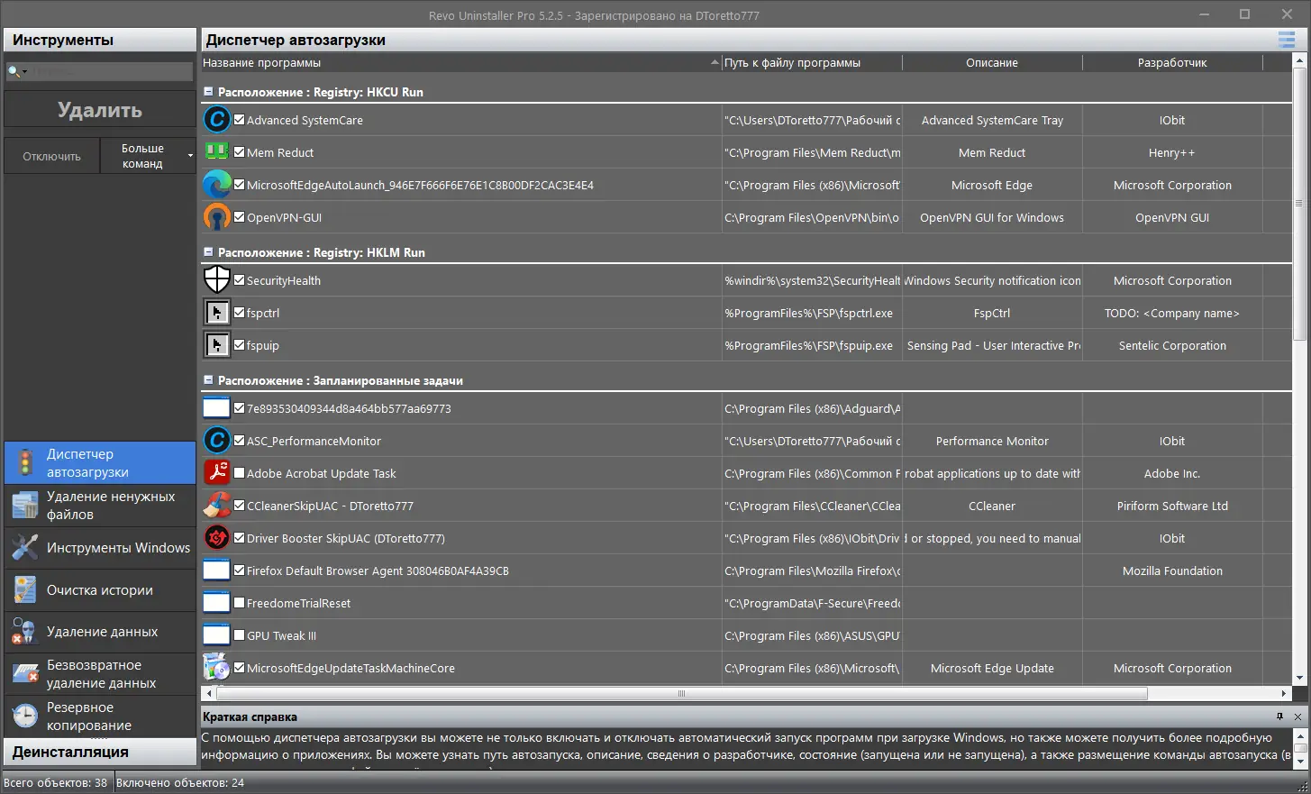 Revo Uninstaller — это мощная программа для удаления нежелательных приложений, которая использует продвинутый алгоритм сканирования системы до и после установки. Она позволяет не только полностью удалить программное обеспечение, но и избавиться от оставшихся файлов, папок и ключей реестра, часто остающихся после стандартных методов удаления. Уникальный «режим охотника» предоставляет простые инструменты для управления запущенными и установленными приложениями, включая деинсталляцию, остановку, удаление и отмену автозапуска. Помимо этого, программа включает восемь дополнительных утилит для очистки системы и повышения её производительности.