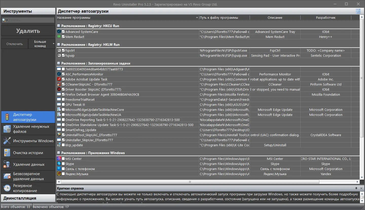 Revo Uninstaller — это мощное решение для полного удаления нежелательных приложений, установленных на вашем компьютере. Благодаря продвинутому алгоритму сканирования системы до и после деинсталляции, программа позволяет эффективно удалять файлы, папки и ключи реестра, оставшиеся после стандартных методов удаления. Уникальный режим «Охотник» предоставляет простые инструменты для управления запущенными и инсталлированными программами, а также отмены автозапуска. В дополнение, программа включает в себя восемь дополнительных утилит для очистки системы и защиты конфиденциальных данных.