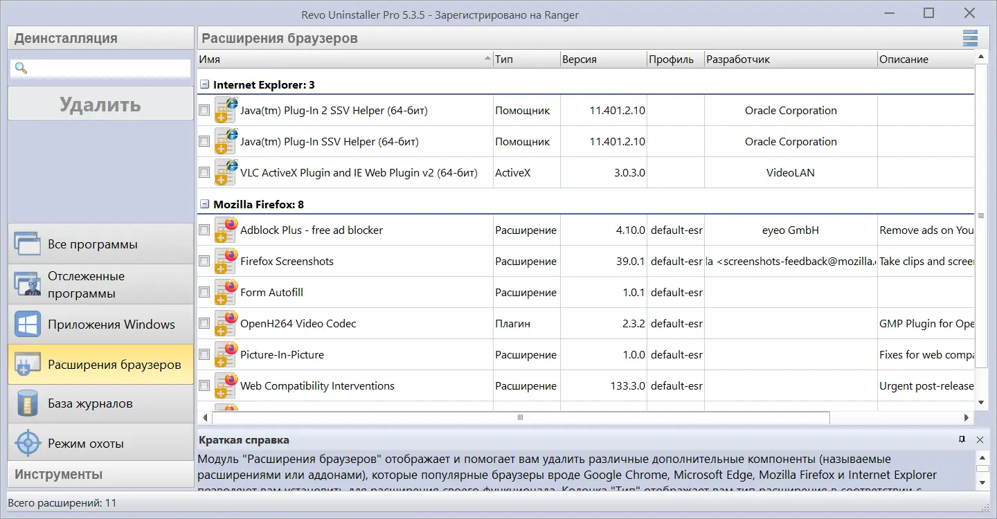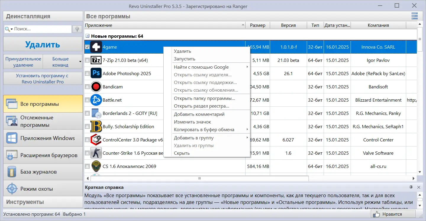 Программа обладает мощным функционалом для удаления программ и очистки системы. Ее интерфейс и инструменты позволяют выполнять задачи быстро и без ошибок, что идеально подойдет как новичкам, так и опытным пользователям.