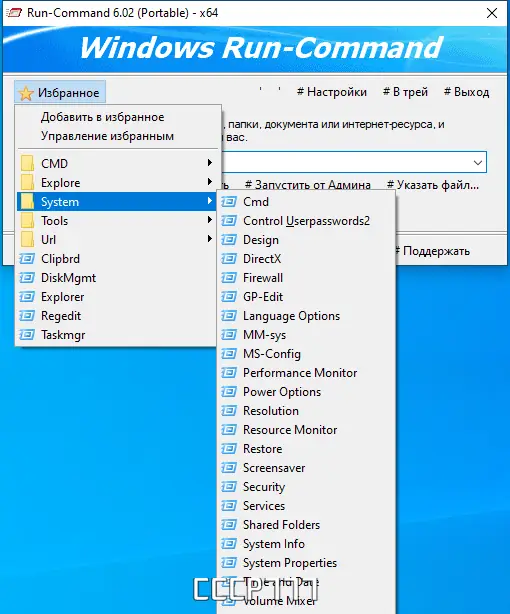 Это небольшая утилита, созданная для быстрого доступа к различным командам и программам через удобный интерфейс. После запуска вы сможете запускать элементы системы как от имени Администратора, быстро управлять избранными командами и группировать их по категориям. Главное окно содержит строку ввода и пять иконок для быстрого доступа, а также возможность добавлять команды в избранное для дальнейшего удобства. Программа полностью портативна, не требует установки и работает на любом компьютере с Windows. Благодаря поддержке переменных среды, комбинаций клавиш и расширенных возможностей запуска, Run-Command значительно ускоряет выполнение часто используемых задач.