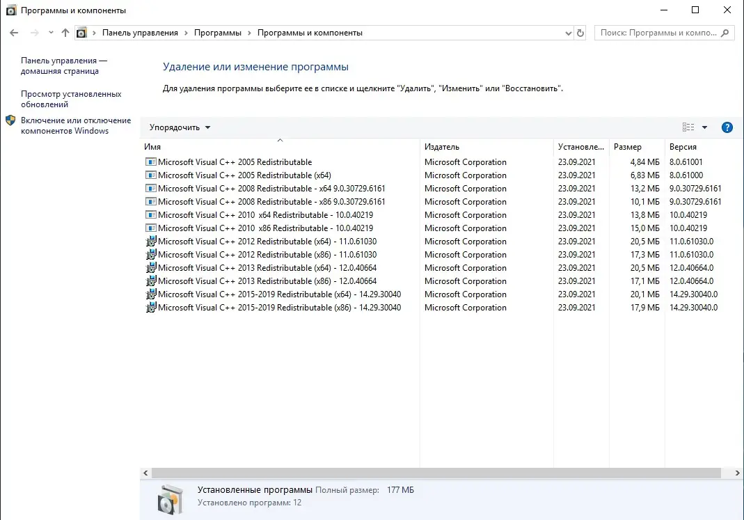 - Автоматическая установка всех существующих версий Microsoft Visual C++ Redistributable Package от 2005 года.