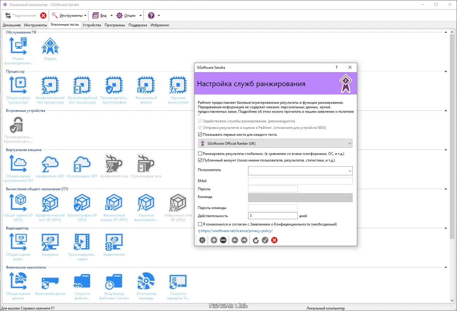 - Тесты производительности процессора, видеоадаптера, накопителей и сети
