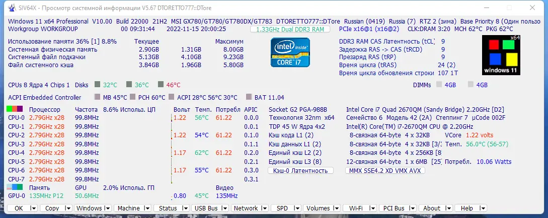 - Показывать всевозможную системную информацию по различным компонентам и устройствам.