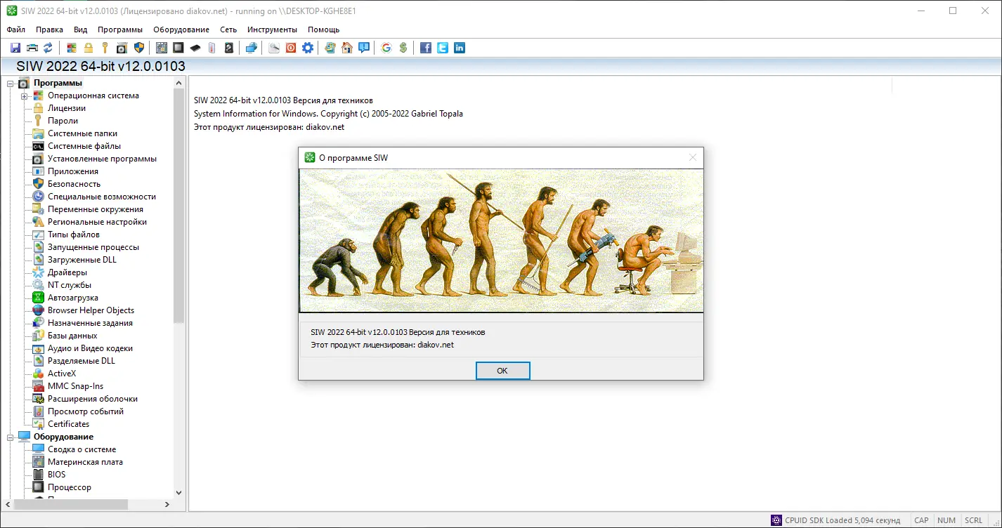 Полезная системная утилита для получения подробной информации о вашей системе, которая помогает быстро собрать и анализировать сведения об аппаратной, программной и сетевой составляющих компьютера.