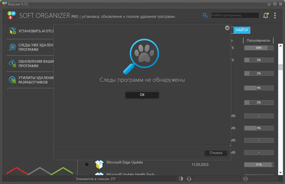 Soft Organizer — это мощная утилита для полного удаления лишних программ с вашего компьютера. Она предотвращает попадание остаточных файлов, записей в реестре и папок после стандартных способов удаления. Благодаря отслеживанию изменений во время установки, программа позволяет легко и быстро удалить любую программу, вместе с её следами, даже если стандартные средства Windows оказались безуспешными.