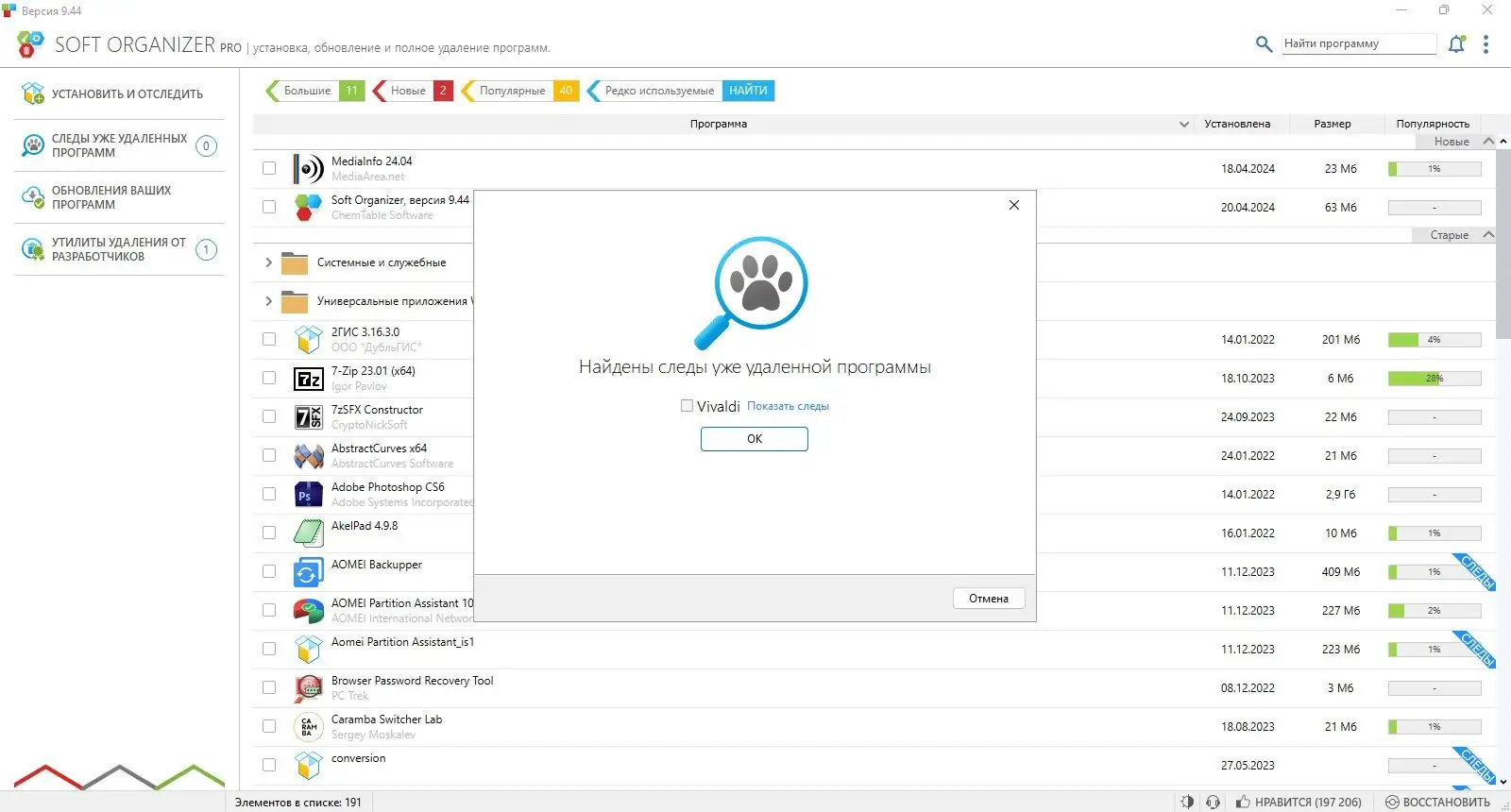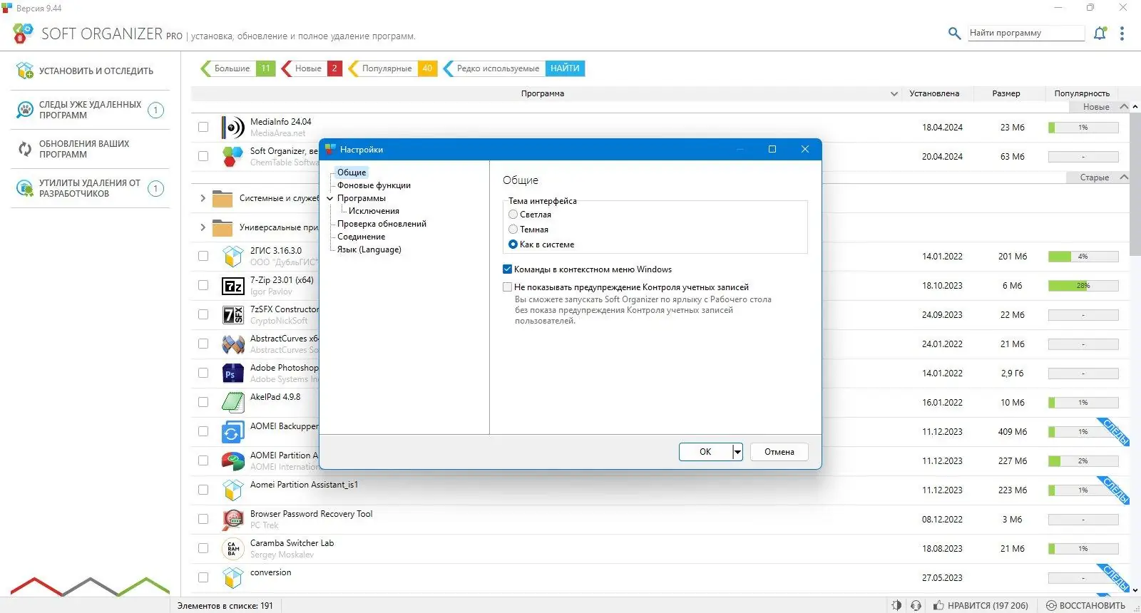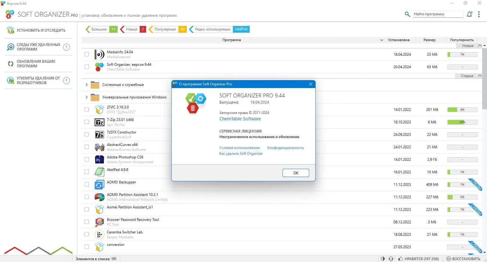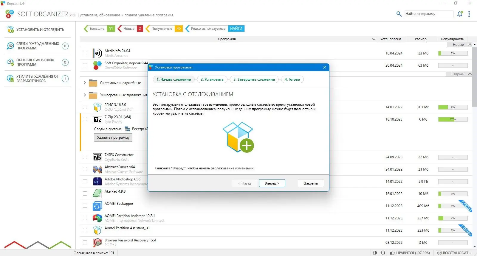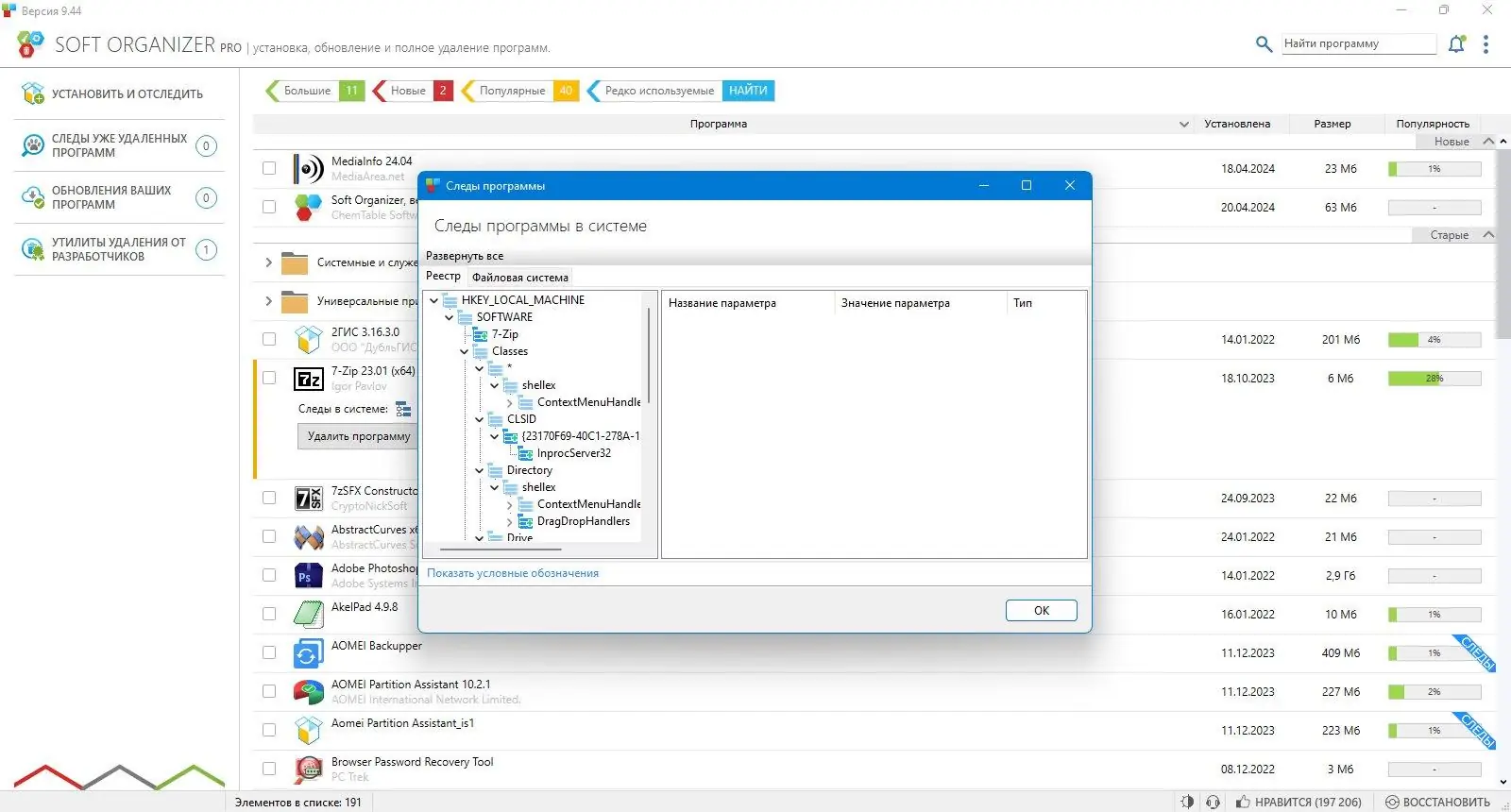 Soft Organizer — это мощный инструмент для полного удаления программ с компьютера, обеспечивающий устранение оставшихся следов после стандартных методов удаления. Программа отслеживает все изменения, возникающие при установке приложений, позволяя полностью избавляться от ненужных файлов, папок и записей в реестре. Это решает проблему накопления мусора в системе, повышая её производительность и стабильность.