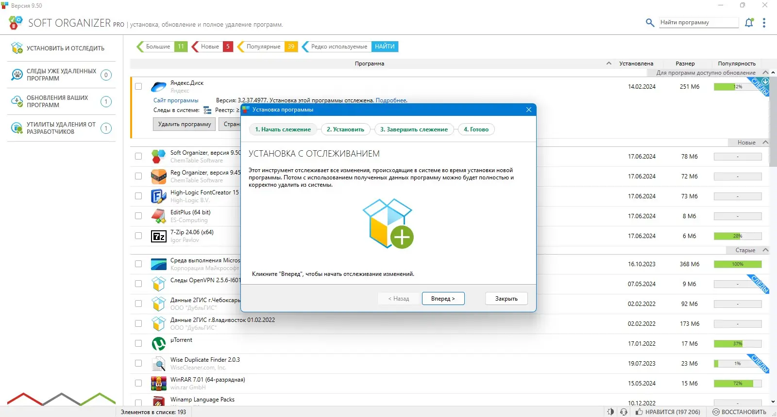 - Полное удаление программ с отслеживанием изменений в системе во время установки.