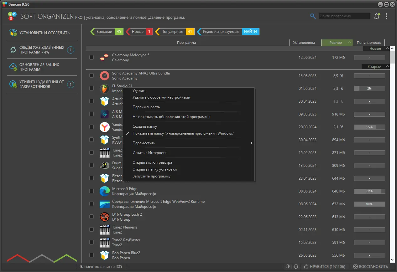 Soft Organizer — это мощный инструмент для полного удаления ненужных программ из вашей системы. Часто после удаления приложений остаются следы в виде файлов, папок и записей в реестре, которые могут замедлять работу системы и занимать лишнее пространство. Даже использование стандартных средств Windows или собственных деинсталляторов не гарантирует полного удаления. Soft Organizer решает эту проблему, отслеживая все изменения, происходящие при установке программ, и позволяя полностью очистить систему от их следов. Эта утилита обеспечивает надежное и быстрое удаление программ, сохраняя работоспособность системы и освобождая место на диске.