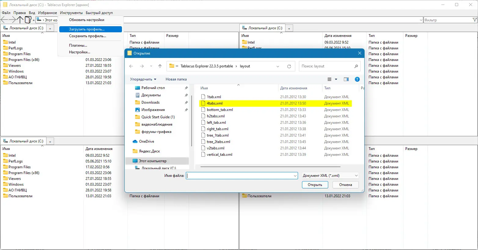 Tablacus Explorer — это полнофункциональный файловый менеджер, превосходящий стандартный проводник Windows по возможностям и удобству использования. В отличие от встроенного инструмента, он поддерживает работу с несколькими панелями (двумя или четырьмя), а также вкладками, что значительно ускоряет и упрощает управление файлами и папками. Благодаря своему небольшому размеру и портативной природе, программа не требует установки и легко переносится на различные устройства, обеспечивая быстрый доступ к важным функциям без лишних затрат времени.