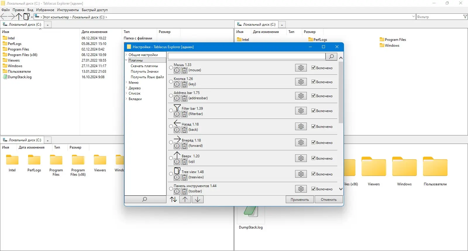 Tablacus Explorer — это мощный и простой в использовании файловый менеджер, который повторяет функционал стандартного проводника Windows, но значительно превосходит его по настройкам и возможностям. Программа поддерживает работу с двумя или четырьмя панелями и вкладками, что ускоряет выполнение операций с файлами и папками. В отличие от встроенного проводника, Tablacus Explorer предлагает расширенные инструменты для копирования, перемещения, удаления и переименования элементов, а также возможность подключать дополнительные расширения (Add-ons) для повышения эффективности работы. Портативная и полностью открытая, программа не требует установки и легко настраивается под нужды пользователя, сохраняя конфигурации в профилях, которые можно переключать по необходимости.