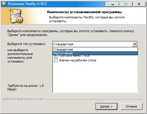 - При необходимости активируйте портативную версию, выбрав соответствующий режим установки.